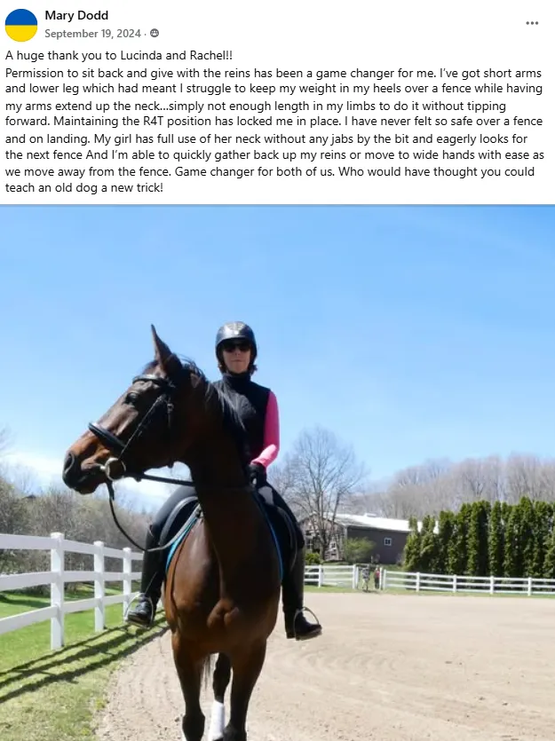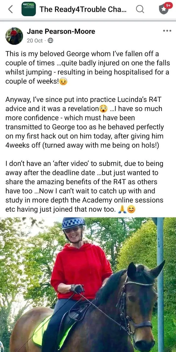 "After falling off my horse a couple of times, I put into practice Lucinda's R4T advice and it was a revelation.