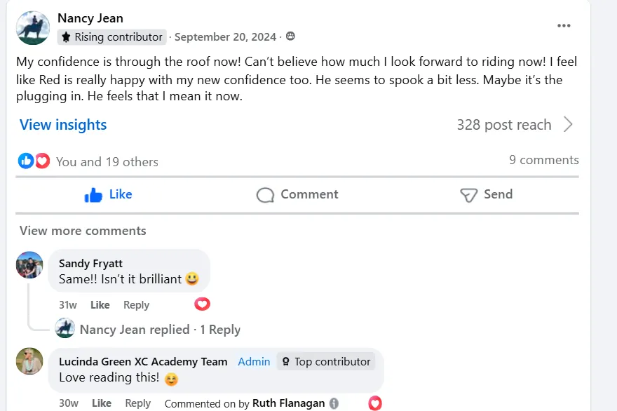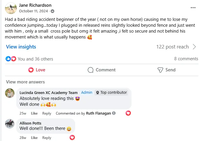 Lifetime access to a community of equestrians who have the same struggles as you and are working hard to overcome them.