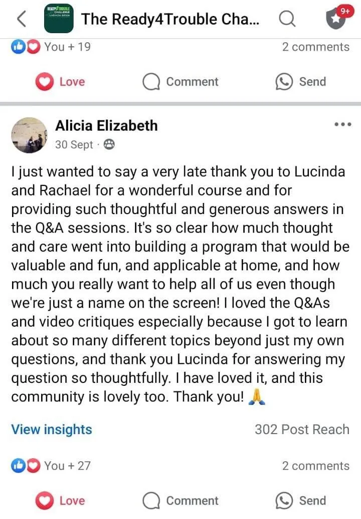 A: Yes, myself and my team really answer your questions on the Private Facebook Group every single day. Every single member is important to me and if you’re struggling, I want to help you succeed. So if you’re interested in personal advice straight from Lucinda Green, now is the time to load up.