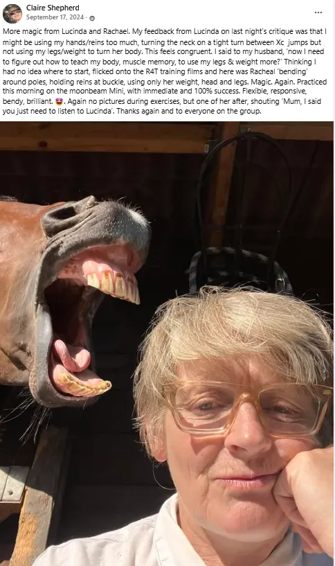 "After falling off my horse a couple of times, I put into practice Lucinda's R4T advice and it was a revelation