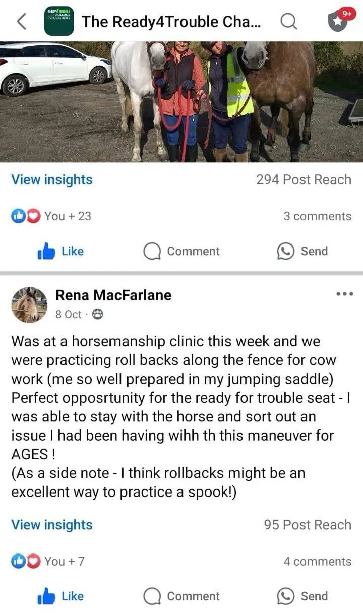 Whether you’re riding an eventer, a dressage horse, or just hacking and trail riding, I would always advise that you are “Ready4Trouble” and that you have trained yourself and your horse to be so.